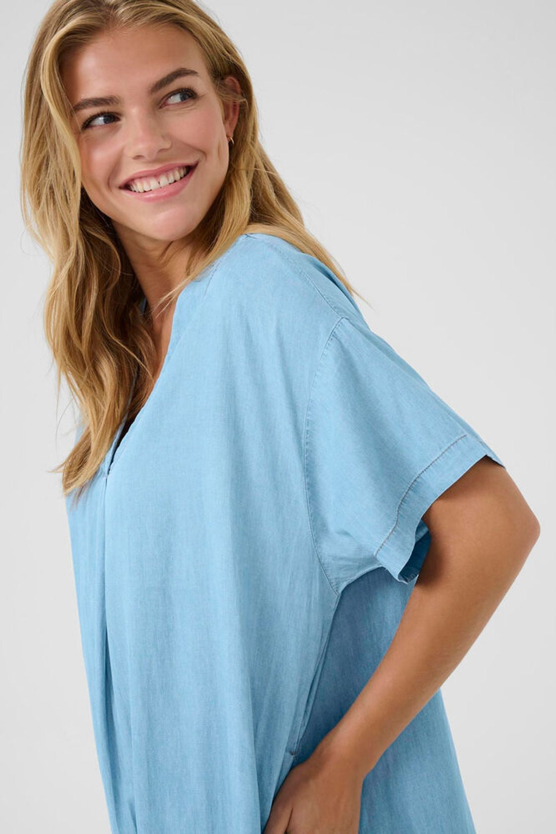 Cotton & Lyocell super soft beach dress - looks fabulous teamed with a belt too, through a sloppy beach bag over your shoulder and all set for a cool beach day.